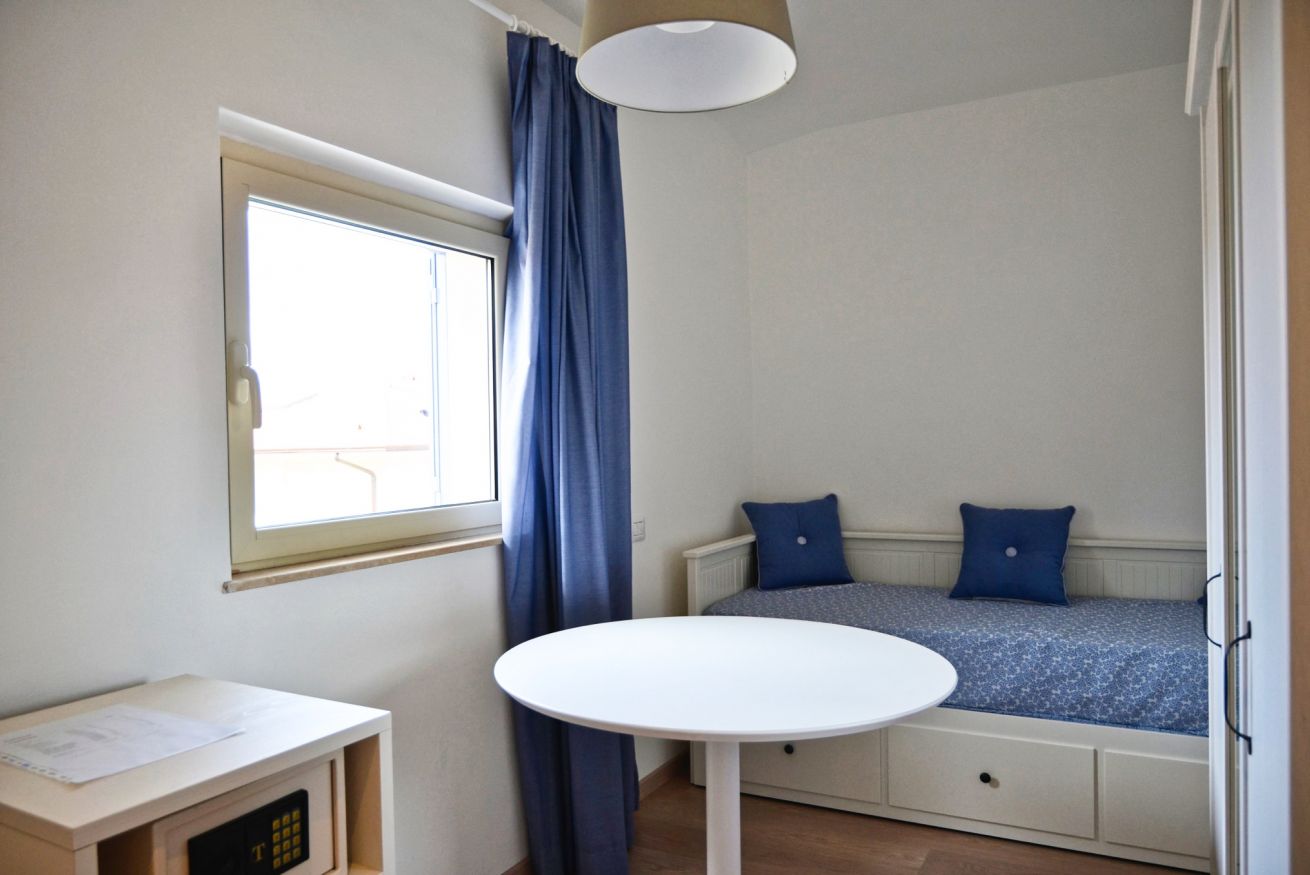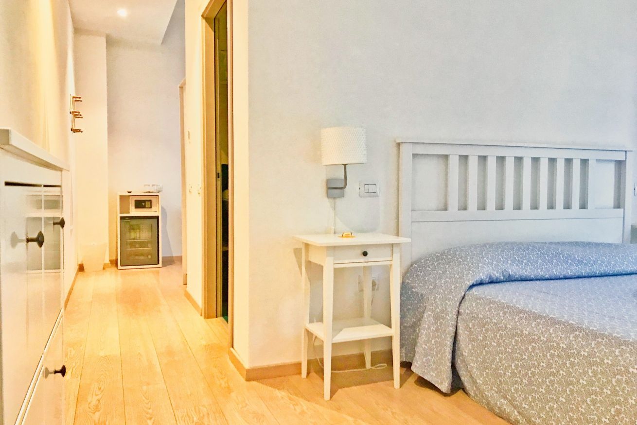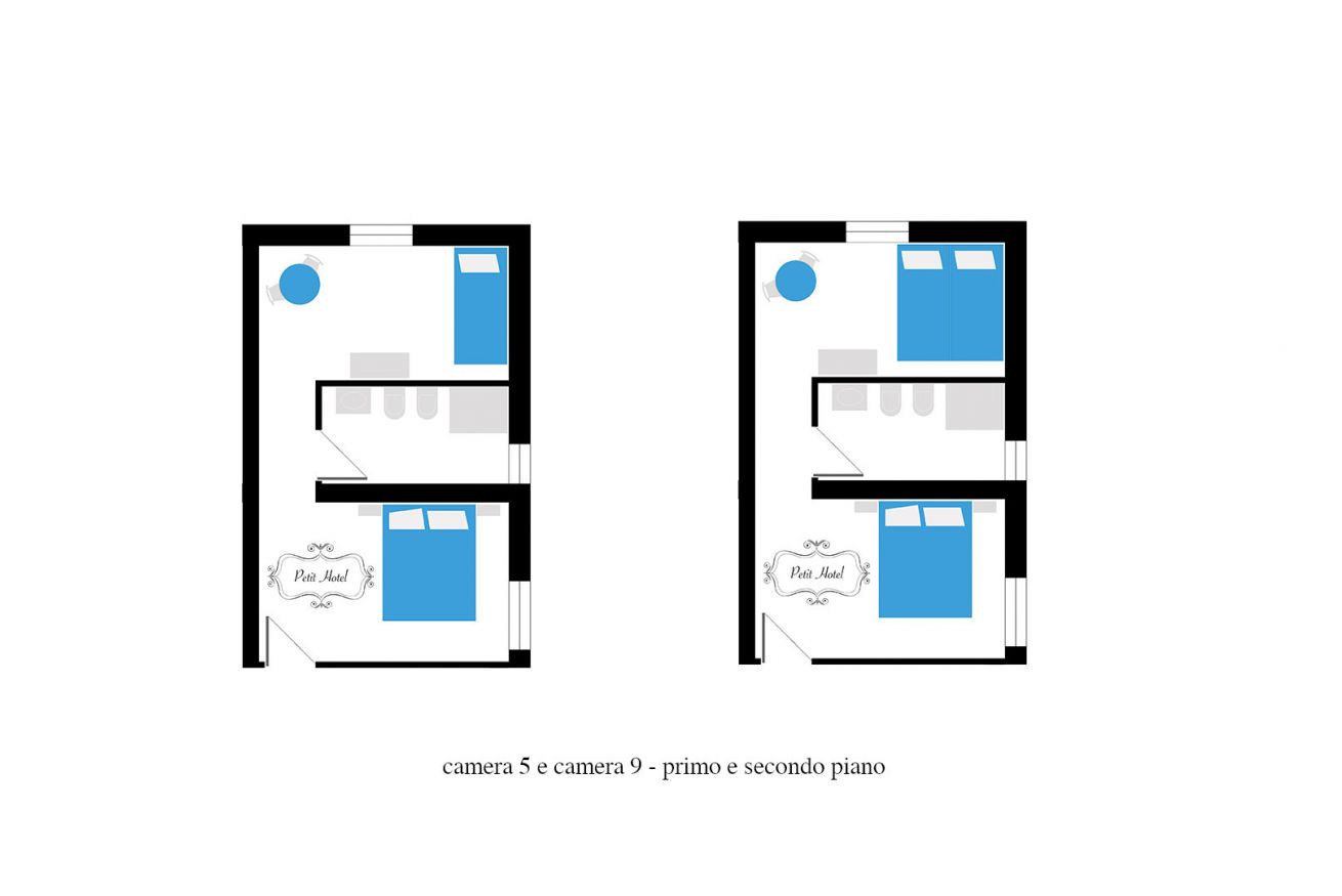 Sono composte di due ambienti collegati con un letto matrimoniale, il bagno con doccia, una scrivania ed un divano letto. Sono dotate di aria condizionata,tv, wifi libero, cassaforte, frigo bar, asciugacapelli e su richiesta di una culla lettino per bambini piccoli. Sono mini suite adatte a famiglie di 3 persone.